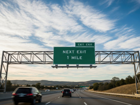The long stretch of highway seems to disappear into the horizon creating an endless road that beckons to adventurous drivers. . AI generation