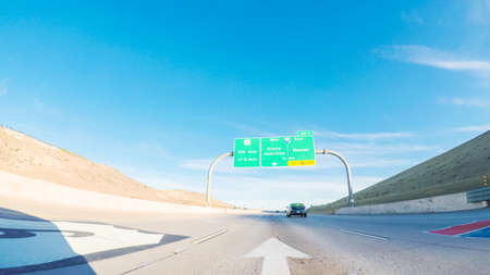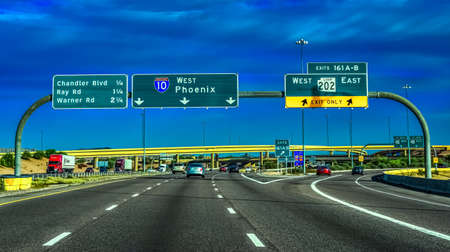 USA, ARIZONA - NOVEMBER 24, 2019: road signs and information boards (West Phoenix) on the expressway in the state of Arizona, USA
