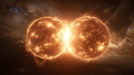 Two Suns Colliding in Deep Space Explosion. Generative AI