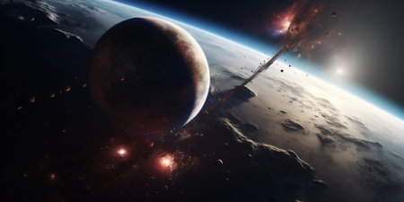 Generative AI : Collision of planets in space Elements of this image furnished by NASA High quality photo