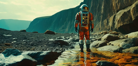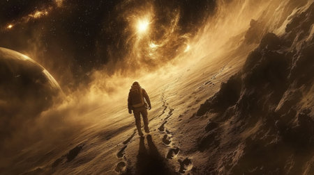 A man in an astronaut suit standing on a planet, AI