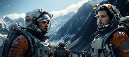 A group of individuals wearing space suits and helmets