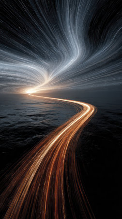 A light trail network connectivity concept with dynamic glowing lines flowing through dark space creating futuristic and energetic atmosphere