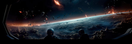 Fantastic view from the porthole of the spaceship. A.I.