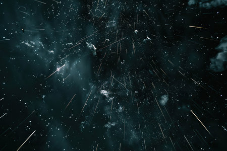 Generative ai on theme of beautiful starfall in the sky, bright meteorites glow in the atmosphere