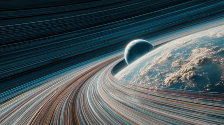 Stunning cosmic image showcases a planet with dramatic rings and light streaks, inviting exploration of the mysteries of the universe.