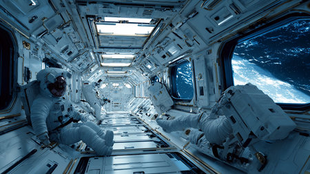 Astronaut working inside a space module