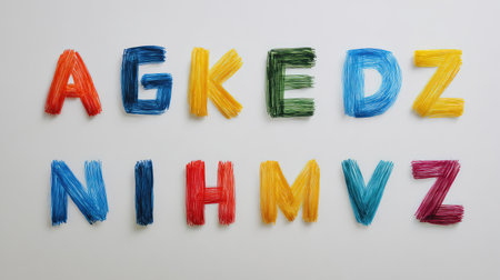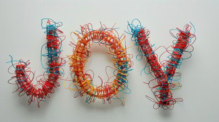 Colorful letters made from twisted strands create a vibrant visual display on a white background, perfect for educational projects, art, and creative designs.