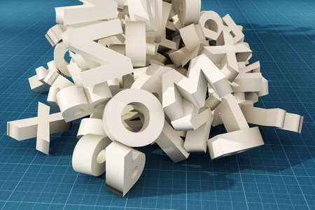 Information overload, bunch of business related keywords, CGI typography. For web page, wallpaper, graphic design, catalog, texture or background. Colorful 3D rendering.