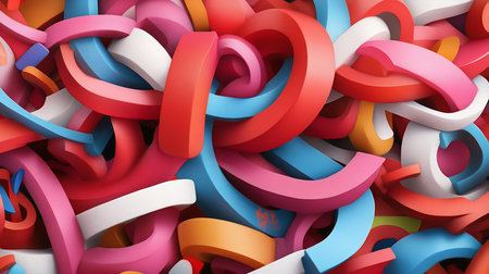 A dynamic and playful composition of brightly colored, curved 3D forms creating an engaging abstract pattern.