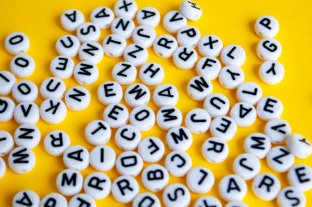 Alphabets on yellow background. Study and education concept.