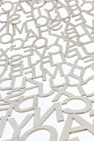 Closeup scattered white English letters