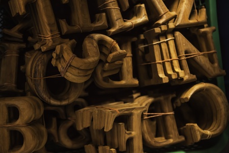 black wooden letters lying in the studio