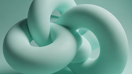 showing interlocking abstract torus shapes in a soft mint green color creating a complex knot-like structure with smooth matte surfaces.
