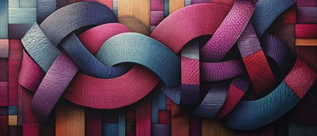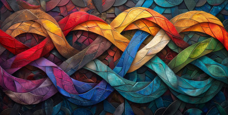 Colorful threads woven together in a vibrant tapestry design of intricate patterns