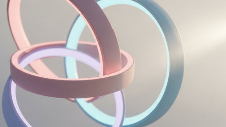showing interlocking pale purple rings forming a complex geometric structure against a soft background. resolution