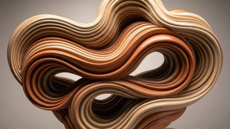 3d rendering of abstract wavy shape made of wood on gray background