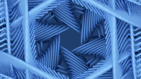 Interlocking azure shapes create depth and movement mesmerizing pattern
