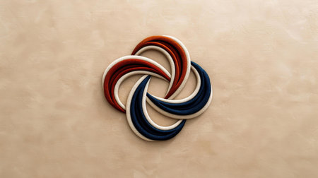 This artistic representation features three interwoven strands of red, white, and blue, creating a striking knot effect against a dark background, symbolizing unity and harmony.