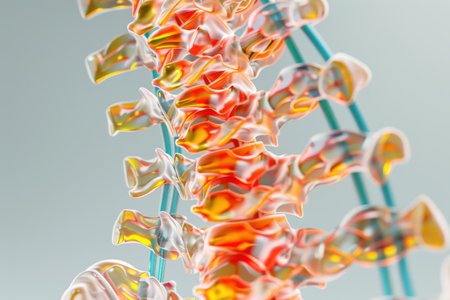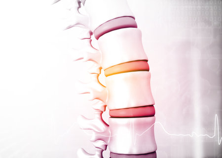 Intricate 3D illustration depicting the intricate structure of the human spine, with emphasis on the essential intervertebral discs that cushion and support the vertebrae, ensuring spinal flexibility and stability.