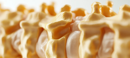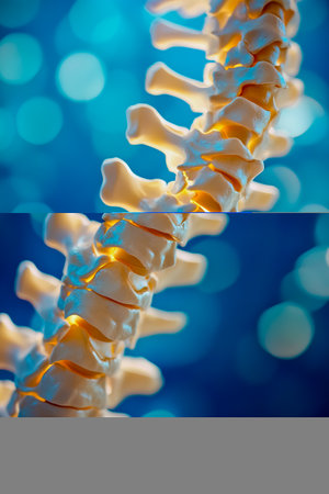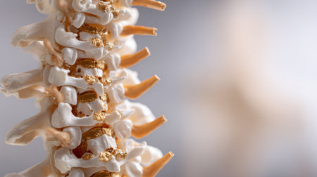 Close-up image of a spinal column with a blurred background showing details of vertebrae and soft lighting