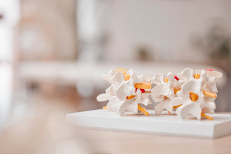 This image features a highly detailed model of the human spine, showcasing the vertebrae and their natural curvature, ideal for teaching and research in anatomy and health care.