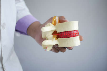 Spinal nerve and bone, Lumbar spine displaced herniated disc fragment, Model for treatment medical in the orthopedic department.