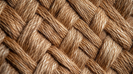 Explore the intricate details of natural fiber weaving in this stunning close-up photograph, showcasing the rich textures and patterns of handmade craftsmanship.