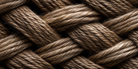 Explore the intricate texture of natural fiber rope in this close-up image. Ideal for showcasing craftsmanship, natural materials, or rustic design themes.