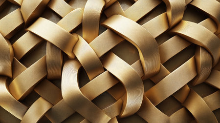 Discover a stunning array of interlocking golden geometric shapes in a seamless 3D design. Ideal for backgrounds or decorative elements in various projects.