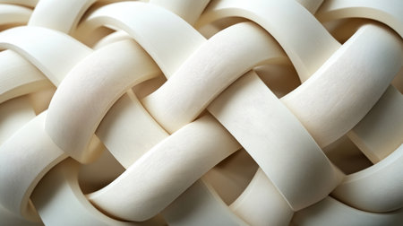 A complex pattern formed by soft, white strips interwoven to create a textured, captivating design that highlights skillful craftsmanship