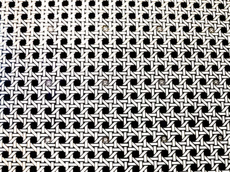 Seamless pattern of bamboo weave background of table, basket or furniture in black and white tone. Natural material, Handmade and Art or geometric abstract wallpaper concept. Monochrome picture style.