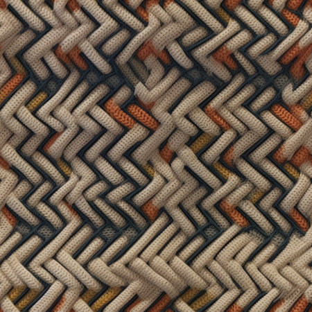Seamless woven fabric texture with intricate handwoven design in brown and black