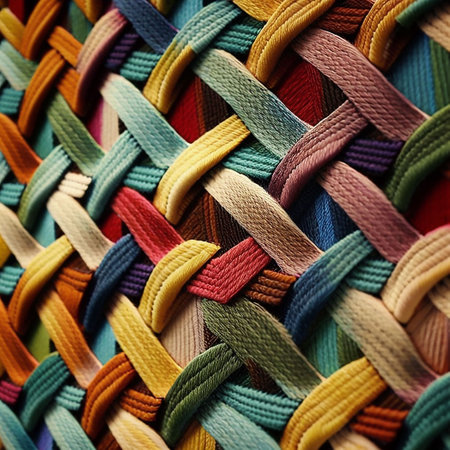 Colorful threads woven together in a vibrant tapestry design of intricate patterns