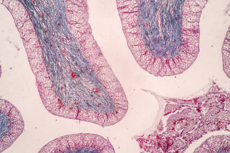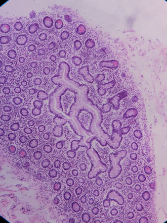Intestine animal tissue under microscope view. histology of intestine.