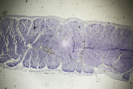 Tissue of Stomach Human under the microscope in Lab.