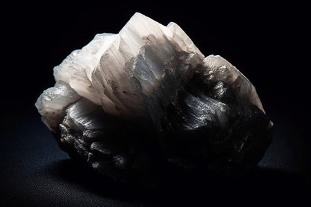 Bassanite is a rare precious natural geological stone eremite on a black background in low key. Fashionable jewelry elegant decoration. AI generated. Header banner mockup with space.