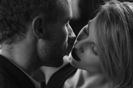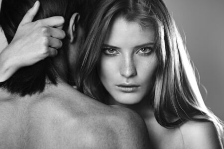 lovely beautiful couple. sexy woman and handsome man. boy and girl together. black and white portrait