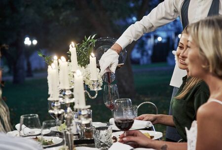 Romantic dinner in the evening on the terrace of a country house