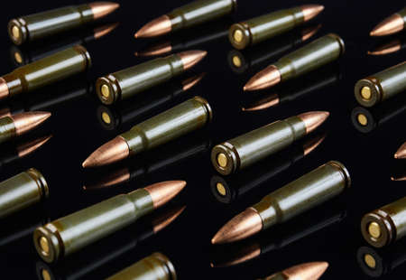metal cartridges for hunting automatic weapons on a black background with a reflection