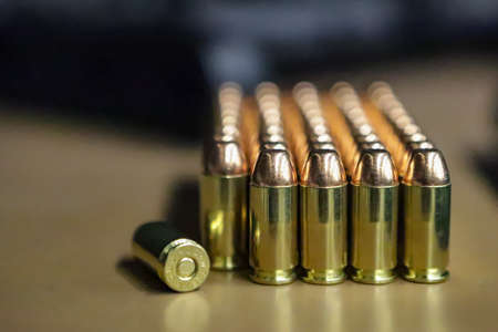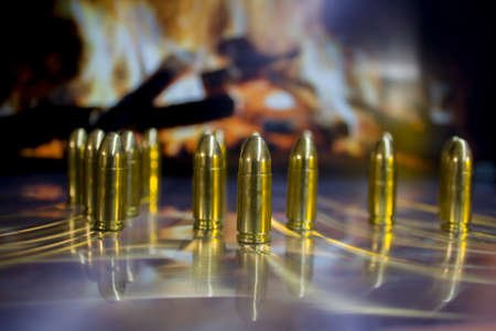 Bullets from a machine gun and a pistol on a dark background
