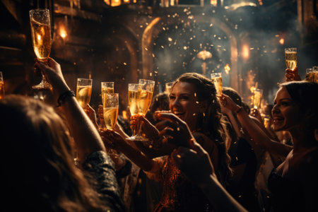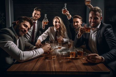 A vibrant scene of friends enjoying nightlife with drinks, capturing the energy and excitement of a lively social gathering.