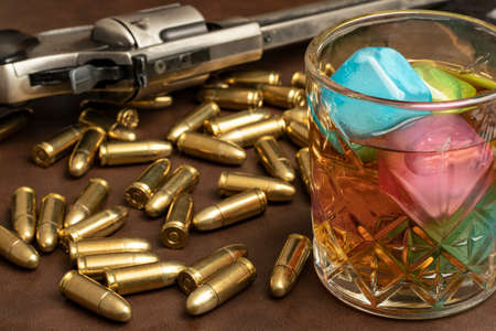 Rubber bullets on mirror background. Self defense weapon