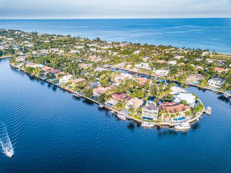 Aerial view of Hillsboro Bay in Pompano Beach, Flordia.