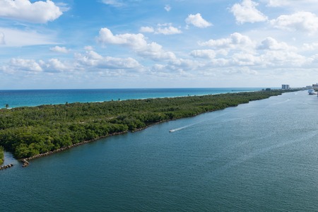 Entrance Channel to Fort Lauderdale. Intracoastal waterway and Port Everglades provide passageway for cruise ships and smaller vessels, in Fort Lauderdale, Florida.