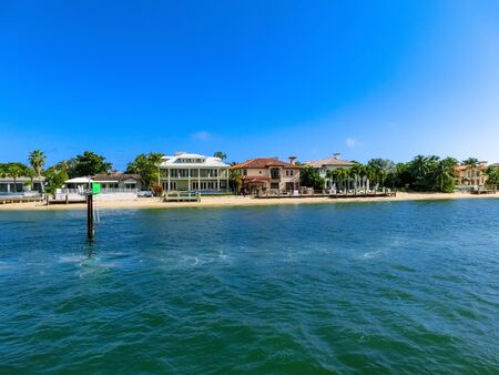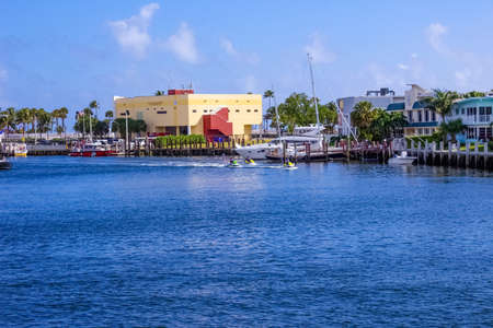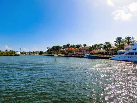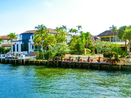 FORT LAUDERDALE, FLORIDA - September 20, 2019: Panorama of mansions in Fort Lauderdale from the canal