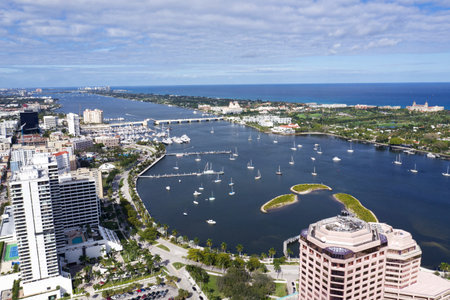 The aerial shot of the tropical city West Palm Beach, Fl