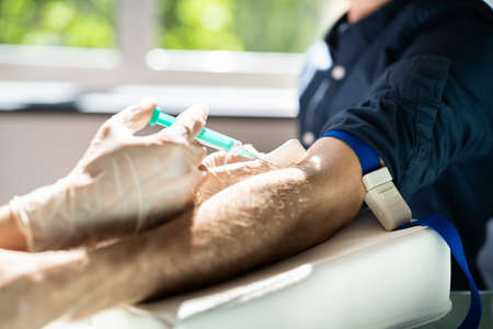 Patient Blood Draw by Doctor. People Donate And Test