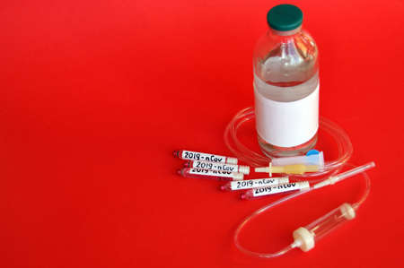 2019-nCoV Novel Corona virus concept. Syringe and ampoules with a vaccine against the virus