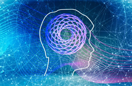 This artwork features a detailed brain against a colorful, abstract background depicting neural patterns.